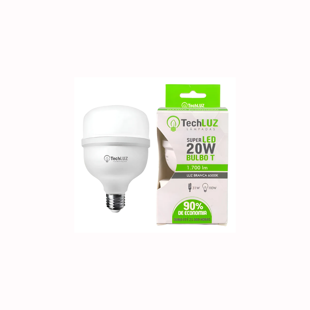 A lâmpada Super LED 20W Bulbo T da TechLuz oferece 1.700 lúmens de intensidade, ideal para ambientes residenciais e comerciais. Com luz branca de 6500K, proporciona ótima iluminação, baixo consumo e até 90% de economia comparado às lâmpadas tradicionais. Produto durável, moderno e sustentável.